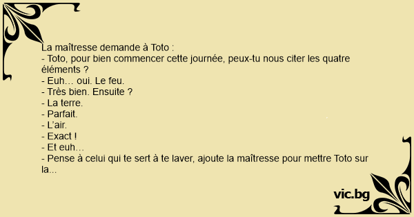 - Toto, pour bien commencer cette journée, peux-tu nous citer les quatre éléments ?