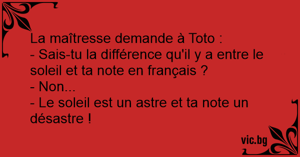 - Le soleil est un astre et ta note un désastre !