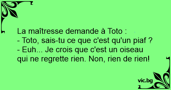 - Toto, sais-tu ce que c'est qu'un piaf ?