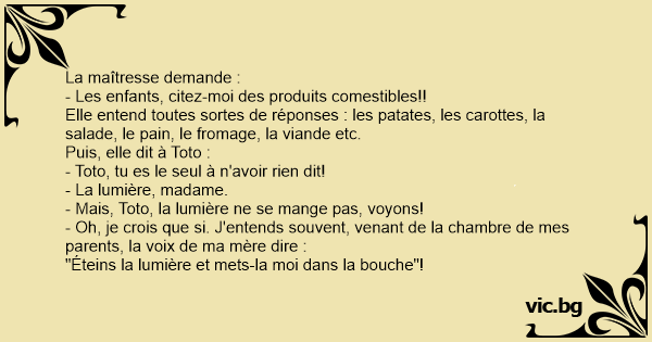 - Mais, Toto, la lumière ne se mange pas, voyons!