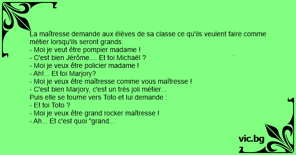 - J'ai dit à la maîtresse que je voulais être grand rocker et elle m'a mis une gifle !