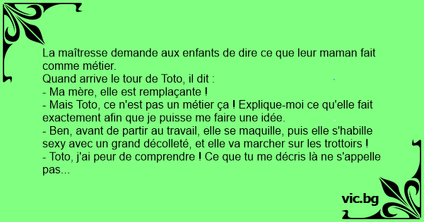 - Toto, j'ai peur de comprendre ! Ce que tu me décris là ne s'appelle pas remplaçante, mais prostituée !