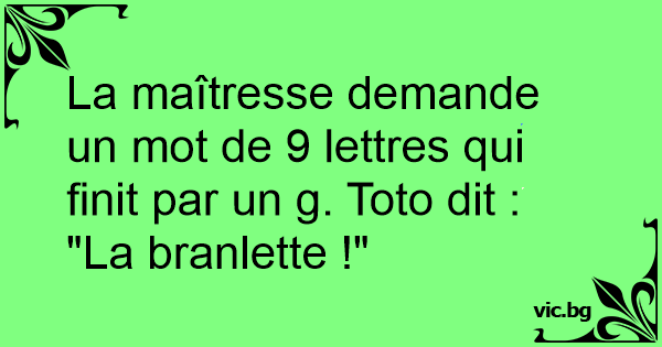 La maîtresse demande un mot de 9 lettres qui finit par un g. Toto dit :