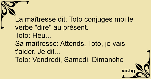 La maîtresse dit: Toto conjuges moi le verbe "dire" au prèsent.