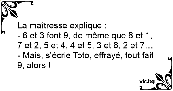 - Mais, s’écrie Toto, effrayé, tout fait 9, alors !