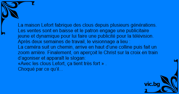 La maison Lefort fabrique des clous depuis plusieurs générations. Les ventes sont en baisse et le patron engage une publicitaire jeune et dynamique pour lui faire une publicité pour la télévision.