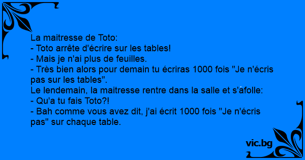 - Très bien alors pour demain tu écriras 1000 fois "Je n'écris pas sur les tables".