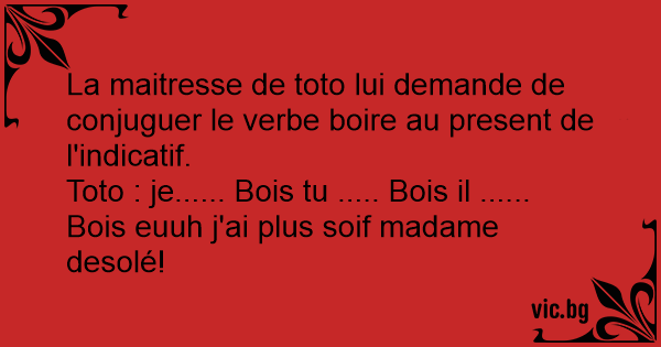 La maitresse de toto lui demande de conjuguer le verbe boire au present de l'indicatif.