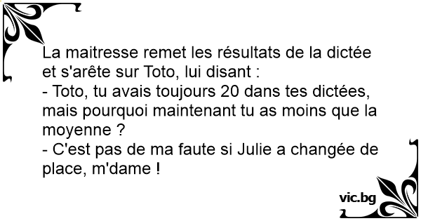 - Toto, tu avais toujours 20 dans tes dictées, mais pourquoi maintenant tu as moins que la moyenne ?