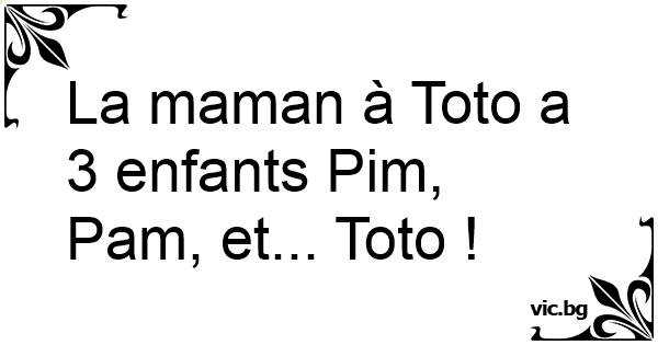 La maman à Toto a 3 enfants Pim, Pam, et... Toto !