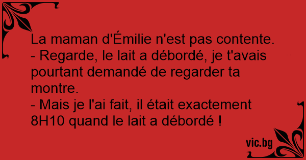 - Regarde, le lait a débordé, je t'avais pourtant demandé de regarder ta montre.
