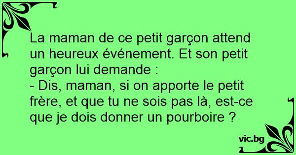 - Dis, maman, si on apporte le petit frère, et que tu ne sois pas là, est-ce que je dois donner un pourboire ?