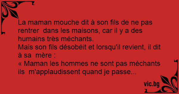 La maman mouche dit à son fils de ne pas rentrer dans les maisons, car il y a des humains très méchants.