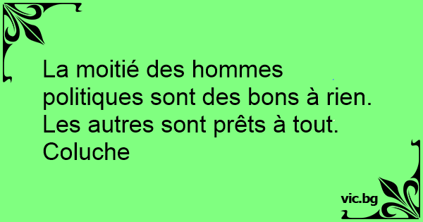 La moitié des hommes politiques sont des bons à rien. Les autres sont prêts à tout.