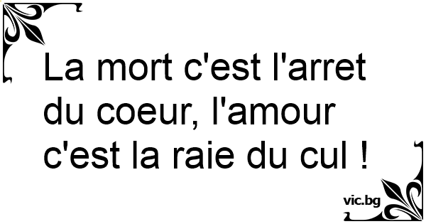 La mort c'est l'arret du coeur, l'amour c'est la raie du cul !