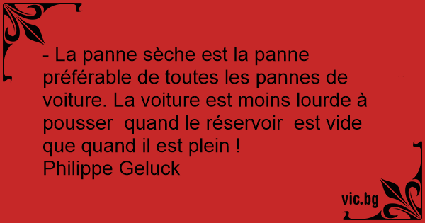 - La panne sèche est la panne préférable de toutes les pannes de voiture. La voiture est moins lourde à pousser  quand le réservoir  est vide que quand il est plein !