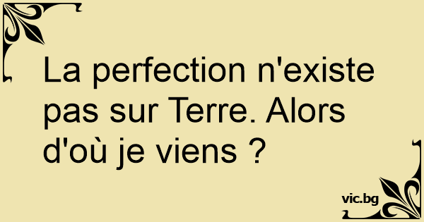 La perfection n'existe pas sur Terre. Alors d'où je viens ?