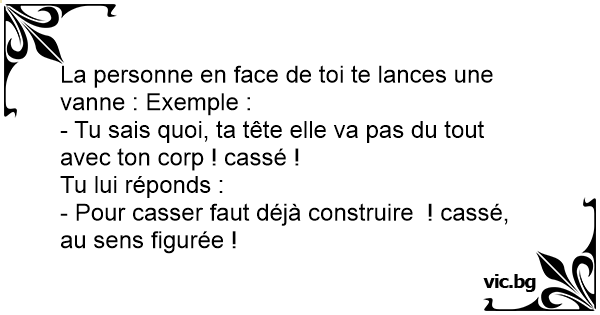 - Tu sais quoi, ta tête elle va pas du tout avec ton corp ! cassé !