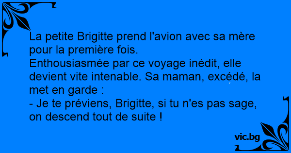 - Je te préviens, Brigitte, si tu n'es pas sage, on descend tout de suite !