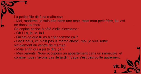 - Moi, madame, je suis née dans une rose, mais mon petit frère, lui, est né dans un chou.