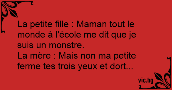 La mère : Mais non ma petite ferme tes trois yeux et dort...