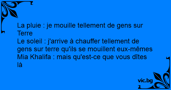 Le soleil : j'arrive à chauffer tellement de gens sur terre qu'ils se mouillent eux-mêmes