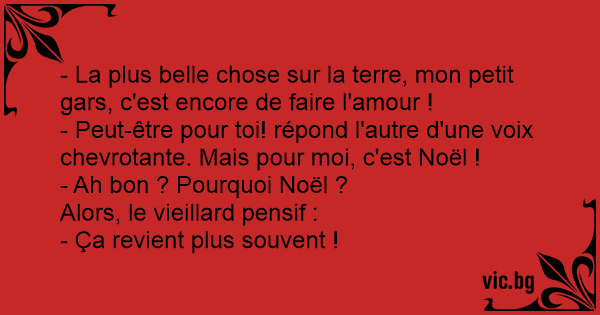 - La plus belle chose sur la terre, mon petit gars, c'est encore de faire l'amour !