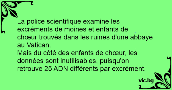 Mais du côté des enfants de chœur, les données sont inutilisables, puisqu'on retrouve 25 ADN différents par excrément.