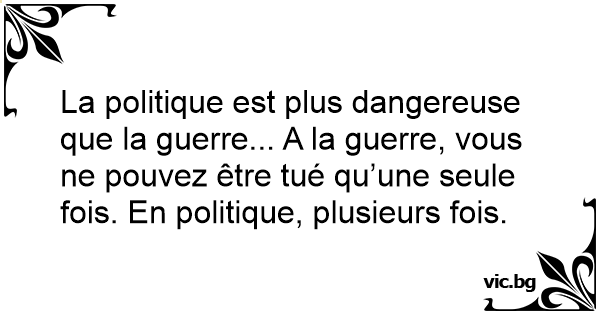 La politique est plus dangereuse que la guerre... A la guerre, vous ne pouvez être tué qu’une seule fois. En politique, plusieurs fois.