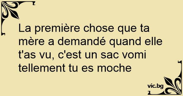 La première chose que ta mère a demandé quand elle t'as vu, c'est un sac vomi tellement tu es moche