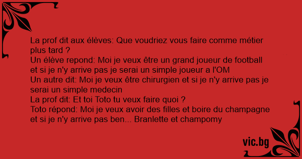 Un élève repond: Moi je veux être un grand joueur de football et si je n'y arrive pas je serai un simple joueur a l'OM