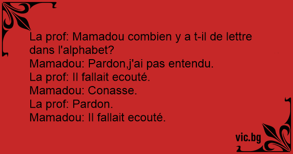 La prof: Mamadou combien y a t-il de lettre dans l'alphabet?
