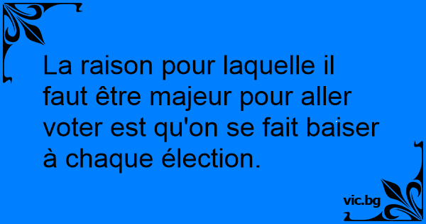 La raison pour laquelle il faut être majeur pour aller voter est qu'on se fait baiser à chaque élection.