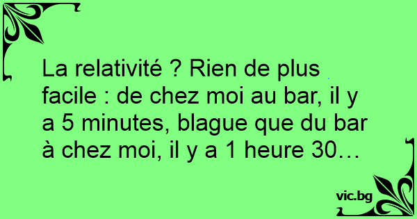 La relativité ? Rien de plus facile : de chez moi au bar, il y a 5 minutes, blague que du bar à chez moi, il y a 1 heure 30…