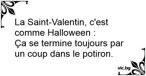 La Sаinт-Valentin, c'est comme Halloween :<br />Ça se termine toujours par un coup dans le potiron.