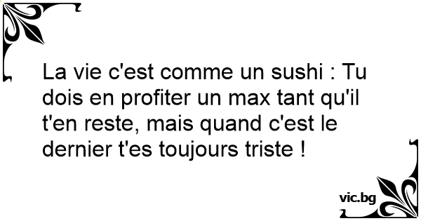 La vie c'est comme un sushi : Tu dois en profiter un max tant qu'il t'en reste, mais quand c'est le dernier t'es toujours triste !