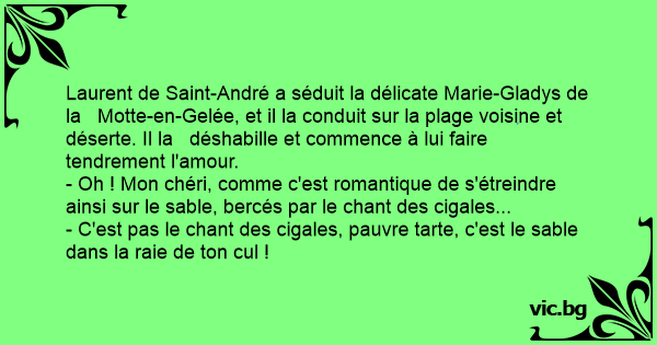 - C'est pas le chant des cigales, pauvre tarte, c'est le sable dans la raie de ton cul !
