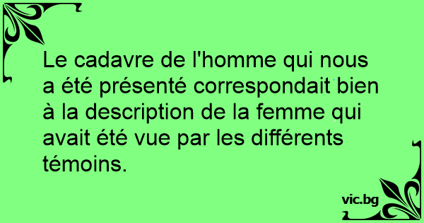 Le cadavre de l'homme qui nous a été présenté correspondait bien à la description de la femme qui avait été vue par les différents témoins.