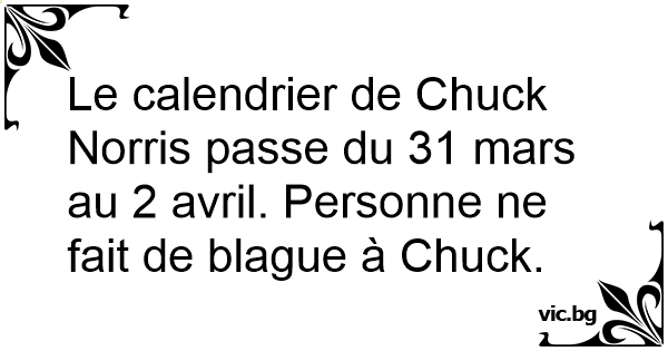 Le calendrier de Chuck Norris passe du 31 mars au 2 avril. Personne ne fait de blague à Chuck.