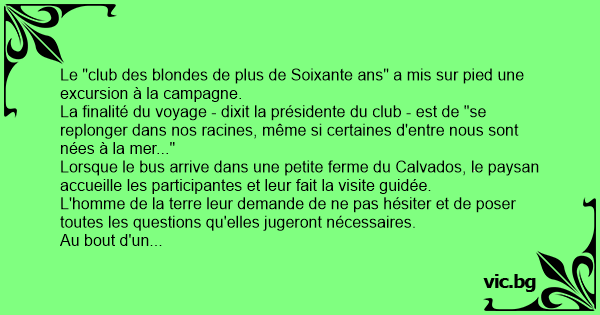 Le "club des blondes de plus de Soixante ans" a mis sur pied une excursion à la campagne.