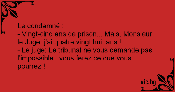 - Vingt-cinq ans de prison... Mais, Monsieur le Juge, j'ai quatre vingt huit ans !
