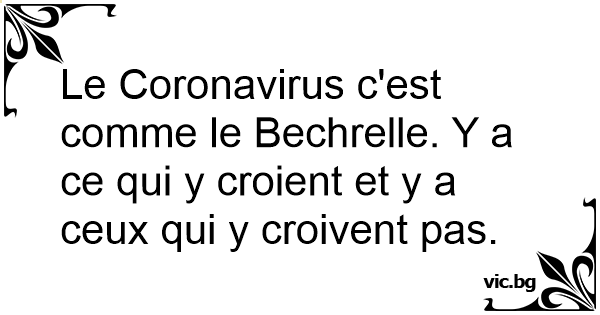Le Coronavirus c'est comme le Bechrelle. Y a ce qui y croient et y a ceux qui y croivent pas.