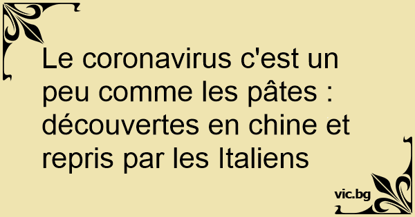 Le coronavirus c'est un peu comme les pâtes : découvertes en chine et repris par les Italiens
