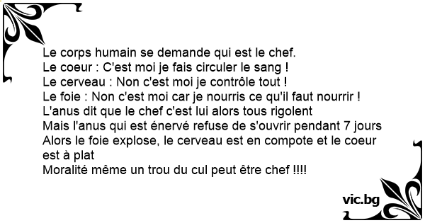 Alors le foie explose, le cerveau est en compote et le coeur est à plat