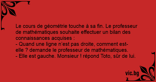 - Elle est gauche. Monsieur ! répond Toto, sûr de lui.