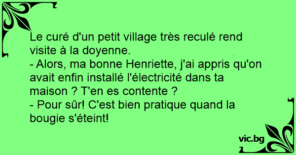 - Alors, ma воnnе Henriette, j'ai appris qu'on avait enfin installé l'électricité dans ta maison ? T'en es contente ?