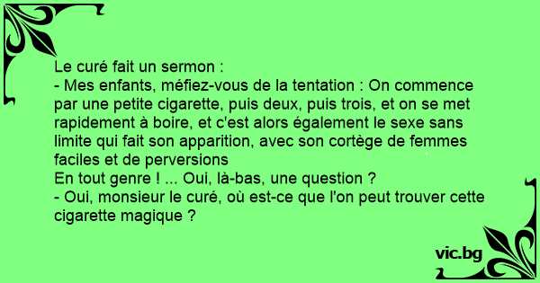 - Oui, monsieur le curé, où est-ce que l'on peut trouver cette cigarette magique ?