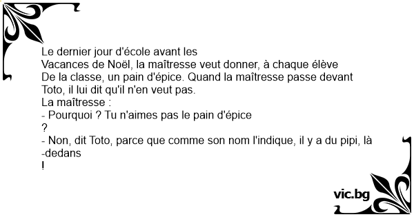 De la classe, un pain d'épice. Quand la maîtresse passe devant