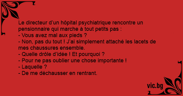 Le directeur d’un hôpital psychiatrique rencontre un pensionnaire qui marche à tout petits pas :