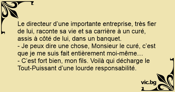 Le directeur d’une importante entreprise, très fier de lui, raconte sa vie et sa carrière à un curé, assis à côté de lui, dans un banquet.